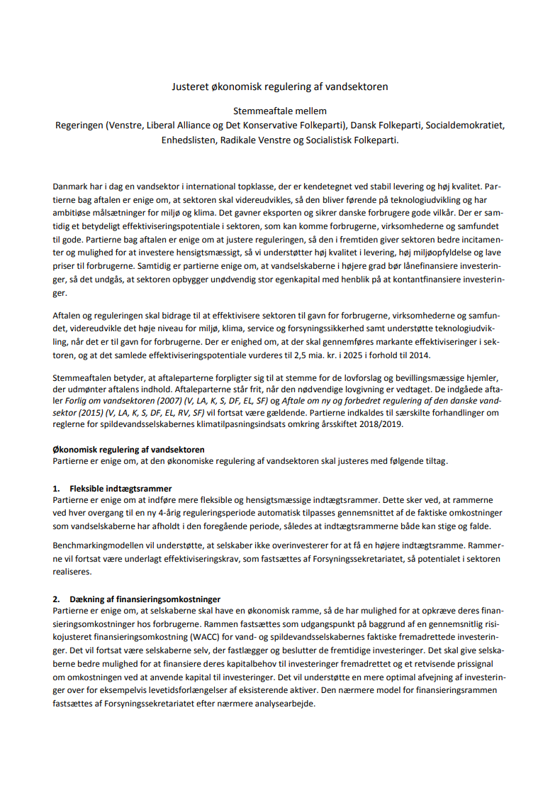 Danmark har i dag en vandsektor i international topklasse, og den bliver nu styrket yderligere med en bred aftale i Folketinget mellem Regeringen, Socialdemokratiet, Dansk Folkeparti, Radikale Venstre, Socialistisk Folkeparti og Enhedslisten.